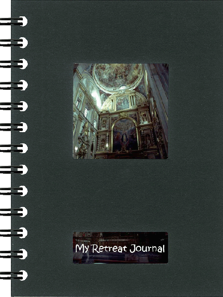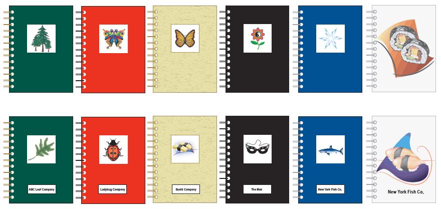 Our quick ship journals come with your choice of cover material color, paper type (ruled or blank), wire color and a single or double die cut window. Send in your artwork to (artwork @ usapad.com) be printed on a digital top sheet, that will be seen through the die cut window(s).
