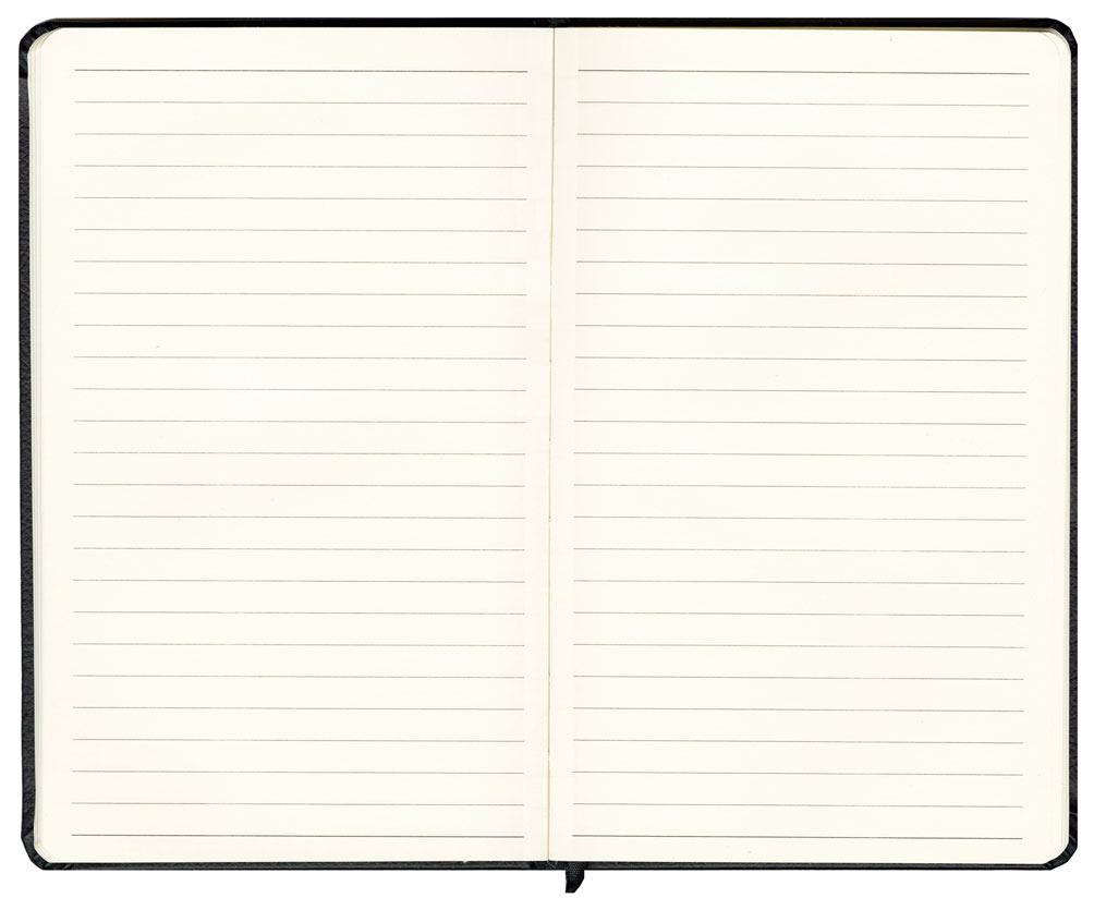 A 5" x 8 1/8" cork perfect bound journal. Lay-flat sewn binding. Has an elastic closure, satin ribbon marker and an expandable inside pocket. Includes 192 ruled cream pages. Pages measure to be 5" x 8".