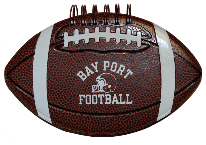 Textured sports vinyl covers, heat sealed front and back, imitate the real thing. These sports jotters have 60 sheets of narrow-ruled paper, and are double-wire spiral bound. They can be ordered blank or with your team's name and logo imprinted. Perfect for school teams and booster clubs! While supplies last, only.